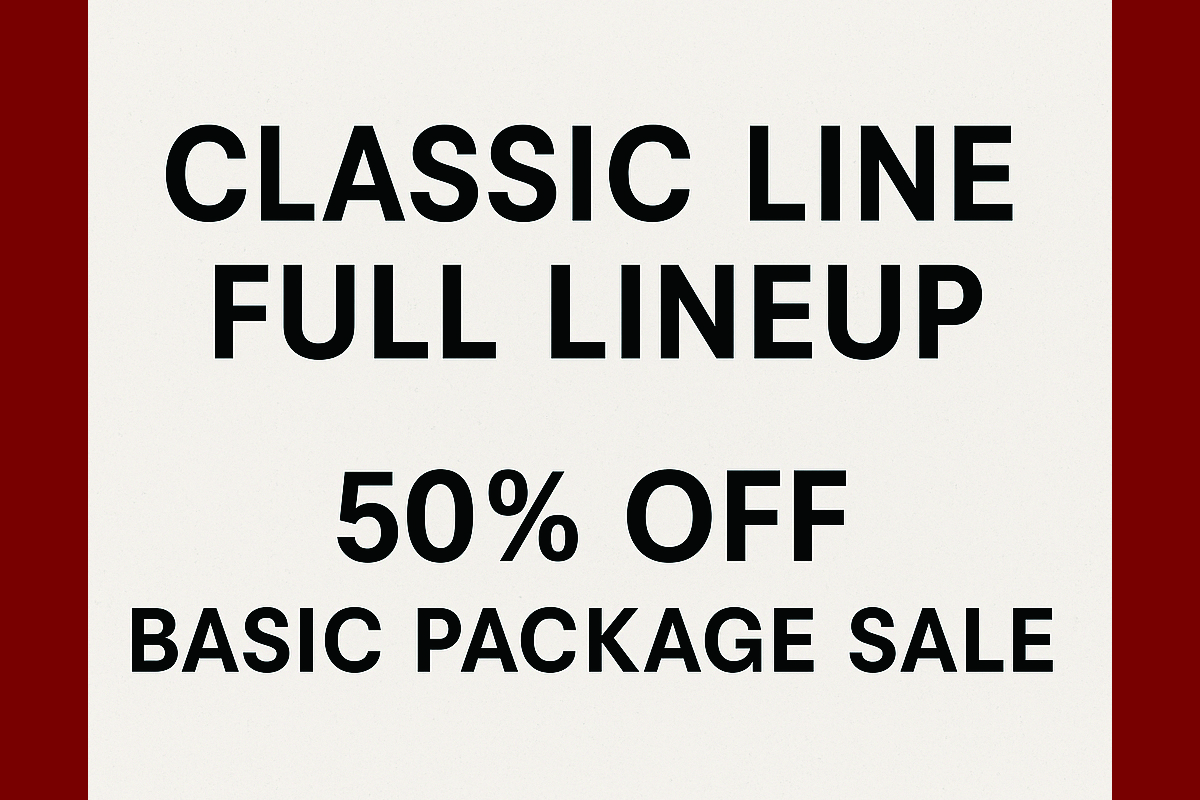 Classic Line Full Lineup – 50% Off Basic Package Sale We are offering a 50% discount on the Basic Package across the entire Classic lineup.…