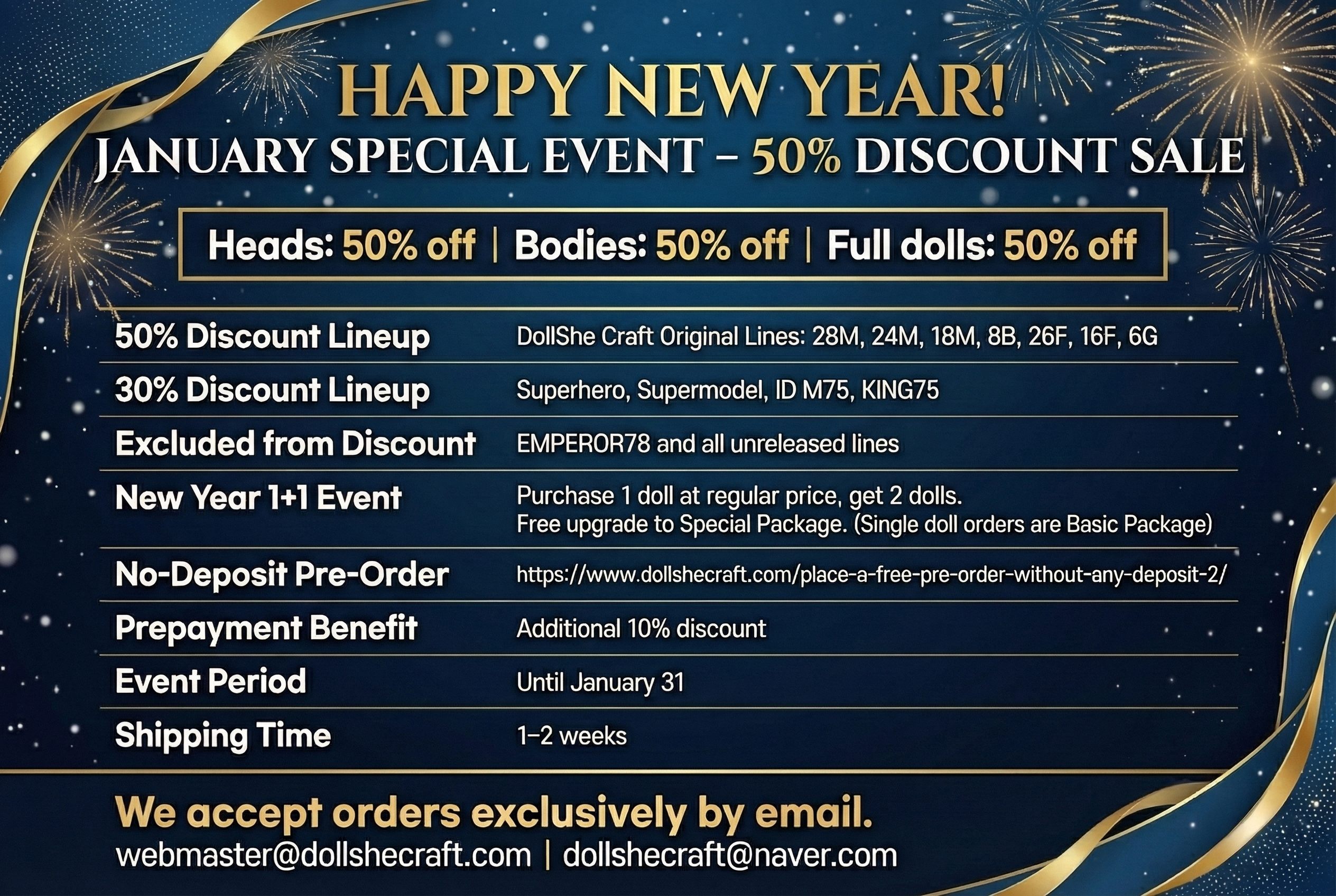 Christmas Special Event – 50% Discount Sale Heads: 50% off Bodies: 50% off Full dolls: 50% off 50% Discount Lineup DollShe…